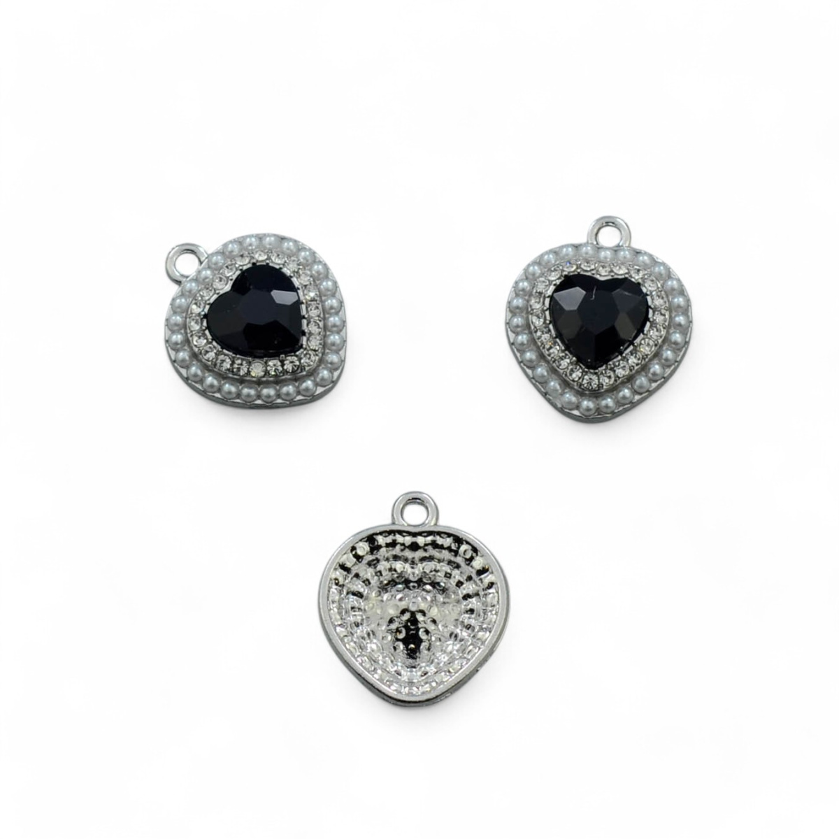 Подвеска Черное Сердце со стразами серебро 17*19 мм уп.3 шт. арт. Р-1026